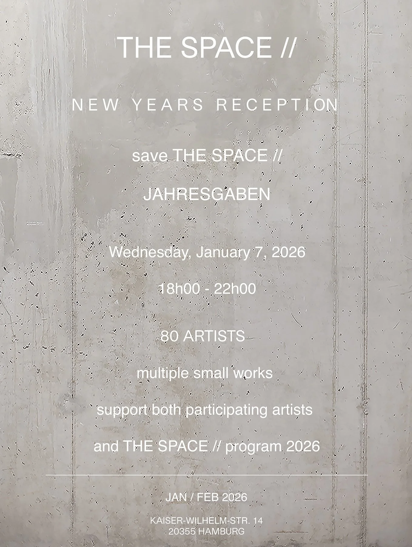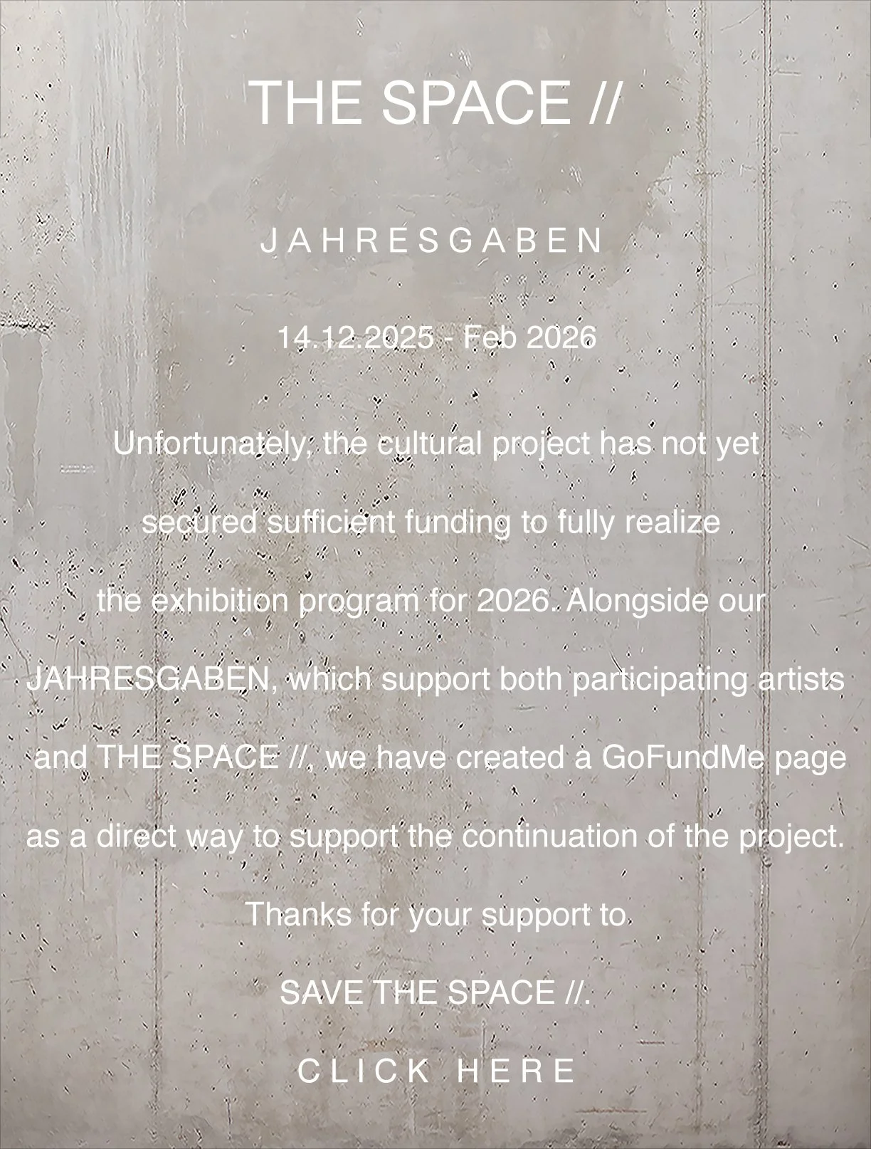 THE SPACE // is an independent exhibition concept and cultural project within a curated format initiated by the artist Sarice Brudet. Beyond the exhibitions, the objective is to create a space for thought, art mediation and foster dialogs and interdisciplinary connections. The focus lies on community and humanity as an active, lived practice.